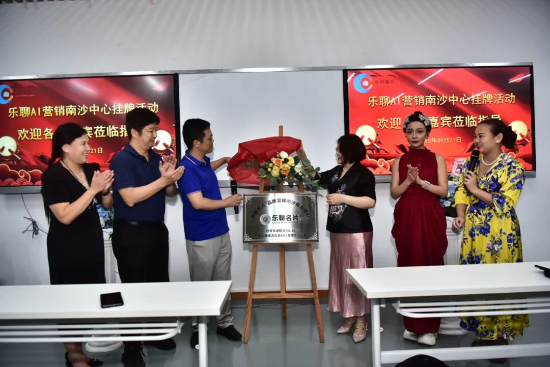 2025 年9 月21 日,乐聊名片品牌官媒南沙服务中心挂牌仪式在南沙大唐工业园优创智谷产业园隆重举行。广州华顺青为信息科技有限责任公司董事长徐孝青向优创集团董事长焦叶红女士进行了授牌仪式,CCTV发现品牌栏目主任、乐聊名片品牌形象大使——著名演员刘九儿、广东省影视文化促进会代表副会长衷文宇、广州市书画艺术协会会长陈惠华等领导嘉宾出席仪式,优创智谷、云米粒、聚秀科技、森蒂菲香氛、巴马水、企商会、三善嘉、花泰红、艺仁文化、易伙伴、十方好货、明星书院、尚股咨询、花阁里等十余家政企负责人和代表近百人共同见证这一产业盛事、见证这一智能销售新科技与南沙数字经济发展深度融合的重要时刻。